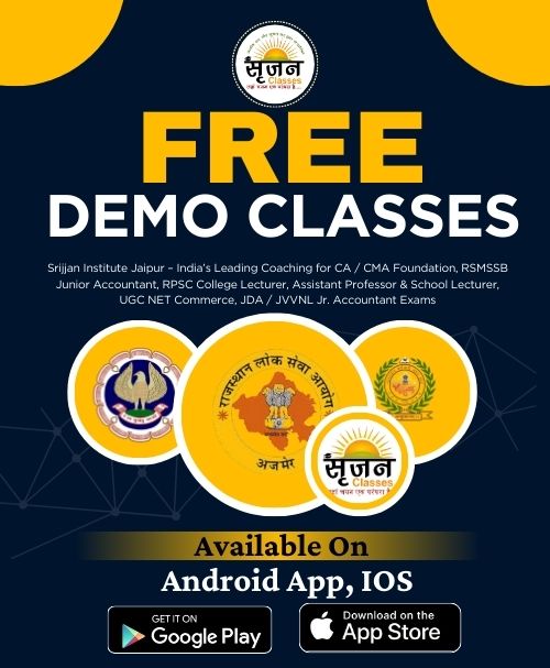 Srijjan Institute Jaipur Rajasthan Leading Coaching for RSMSSB Junior Accountant, RPSC College Lecturer, Assistant Professor & School Lecturer, UGC NET Commerce, JDA / JVVNL Jr. Accountant Exams, CA / CMA Foundation.
