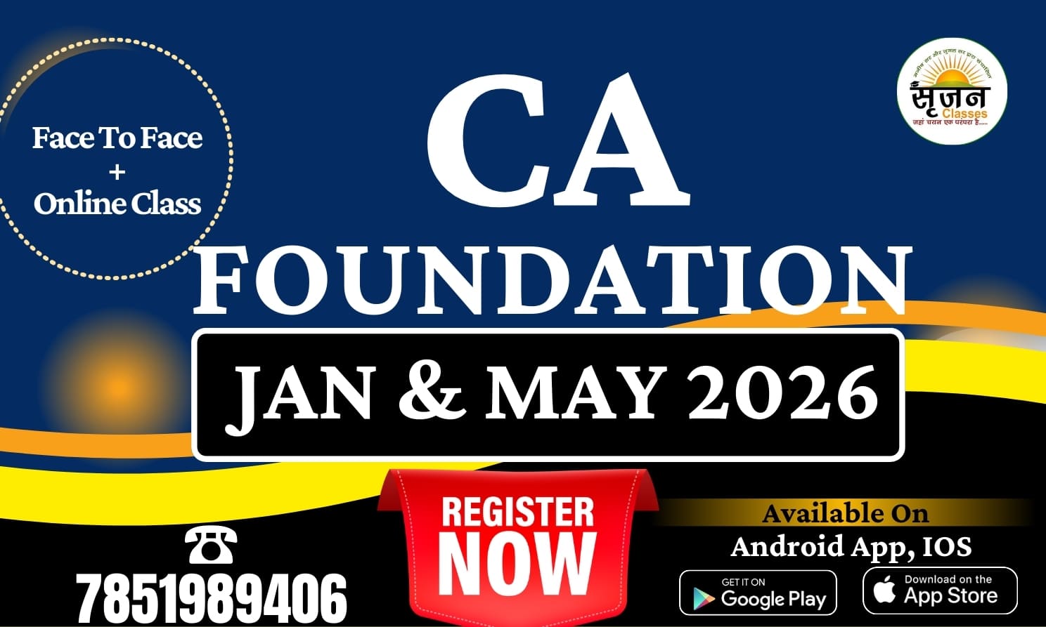 Srijjan Institute Jaipur provides complete CA Foundation coaching with updated ICAI syllabus coverage and daily revision. Expert commerce faculty, including Manish Chaklan Sir, ensure deep conceptual clarity and exam-oriented preparation. Chapter-wise notes, MCQs, mock tests, and doubt-solving sessions make learning easy and scoring high. We focus on fundamentals, speed-building, and 100% syllabus completion before exams. Join Rajasthans leading commerce institute trusted by 15,000+ students for CA Foundation success.