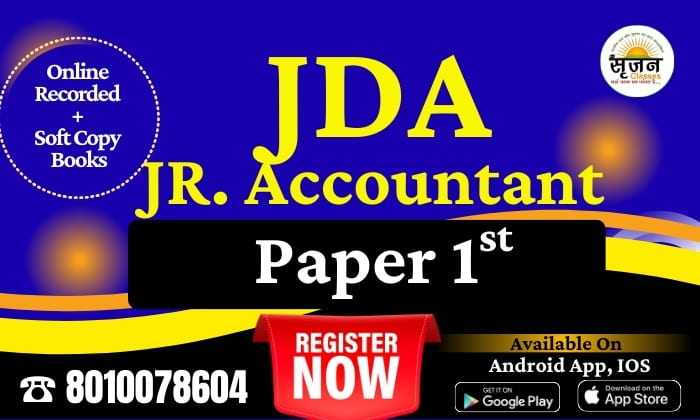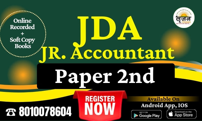 Srijjan Institute offers the Best JDA Junior Accountant Paper 2nd Coaching in Rajasthan, specially designed for students aiming to master Accounting, Bookkeeping, Auditing, and Financial Management as per the updated JDA syllabus. This course provides in-depth coverage of Accounting Principles, Journal-Ledger-Trial Balance, Final Accounts, Cost Accounting, Income Tax Basics, GST Concepts, and Computerized Accounting, ensuring strong conceptual clarity. With high-quality study material, practice sheets, and chapter-wise tests, students gain complete command over all scoring sections of Paper 2nd. Our expert faculty focuses on exam-oriented explanations, real-life accounting examples, and advanced problem-solving techniques to boost accuracy and speed. Join Srijjan Institute to get the most structured, result-oriented, and fully updated preparation for JDA Junior Accountant Paper 2nd and secure your selection with confidence.